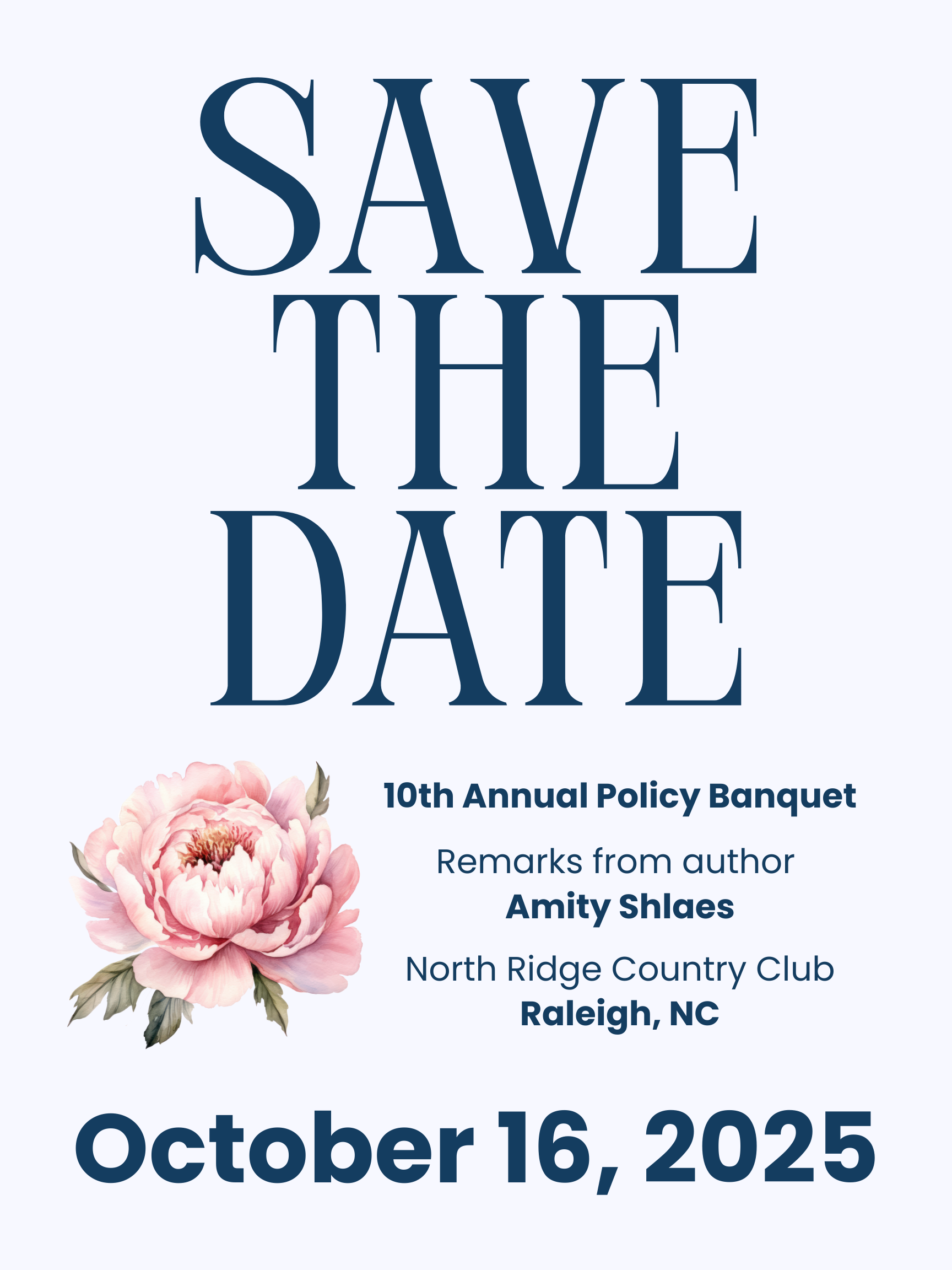 We are excited to host renowned author and speaker Amity Shlaes for our 10th Annual Policy Banquet in Raleigh, NC, on October 16 at the North Ridge Country Club. Ms. Shlaes will speak on “Calvin Coolidge, The Greatest Educator of All.”