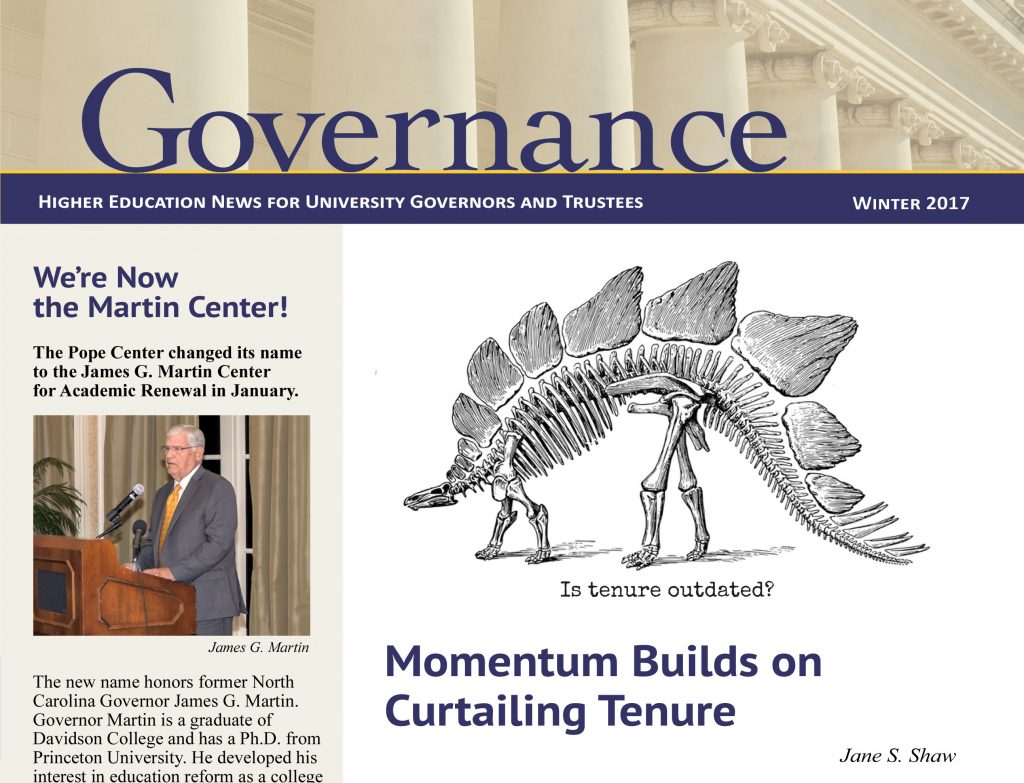 Previous Image Next Image Governance Winter 2017 Primarily for university governors, trustees, and policy makers, we publish Governance, a quarterly report on higher education trends, policy recommendations, and best practices.