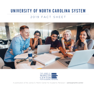 The latest publication from The James G. Martin Center for Academic Renewal, “University of North Carolina System 2019 Fact Sheet,” provides information on enrollment, tuition, graduation rates, student debt, and more for schools in the UNC system in an “at-a-glance”-style brochure. The fact sheet also examines significant trends in tuition rates, funding, and faculty, administration, and staff employment.