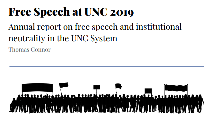 In 2017, the North Carolina legislature passed House Bill 527 (now State Law 2017-196) in order to foster free, open inquiry in the state’s colleges and universities. One of the provisions ordered the University of North Carolina system Board of Governors to produce an annual report on two major categories of intellectual freedom: free speech and institutional neutrality.