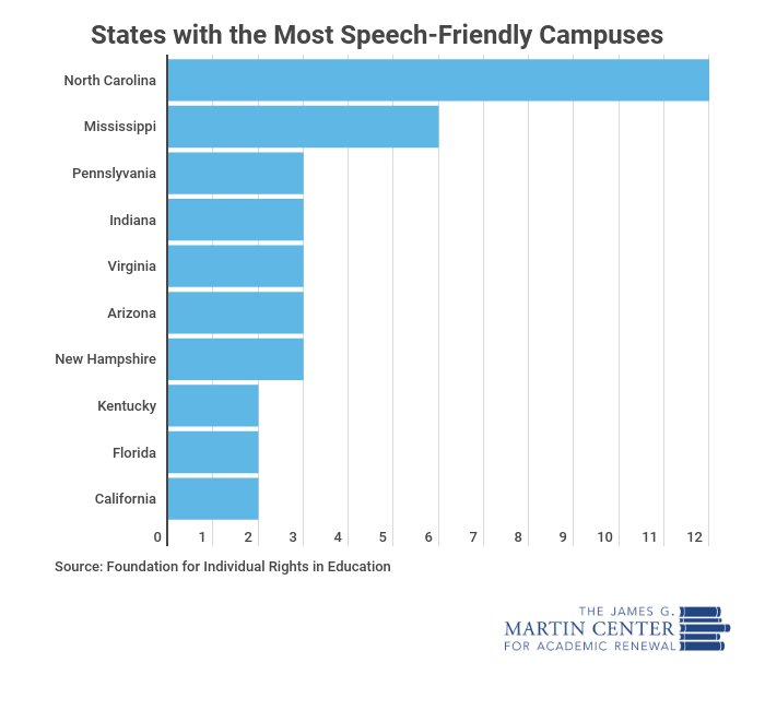 The Martin Center looked at FIRE’s Spotlight Database to see which states have done the most in safeguarding the Constitutional rights of students on campus: