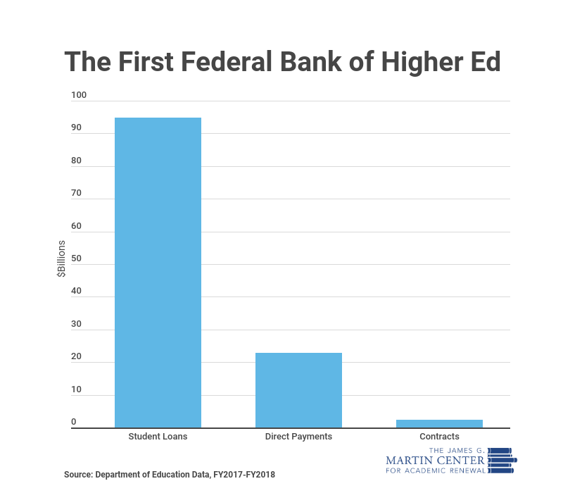 The federal government has grown in importance for higher education for decades. The most long-lasting effect could be its status as the lender of first resort for student loans. The vast majority of federal spending on colleges and universities comes in the form of making loans, dwarfing all other activities.