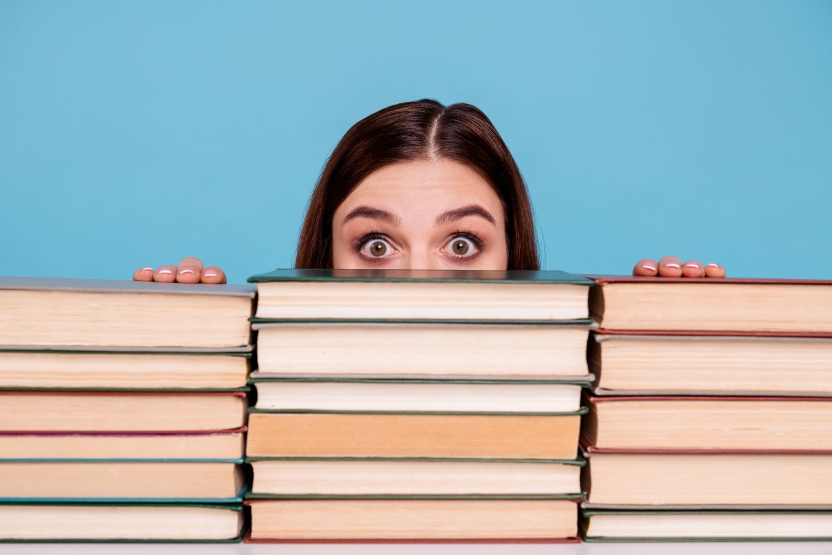 Close-up portrait of her she nice attractive intellectual smart clever brainy, stunned girl hiding behind book shelf at work place station isolated over bright vivid shine blue background State legislatures are taking up higher education reform. Sometimes higher education reform consists of attempts to regulate what happens on college campuses, such as laws that prohibit universities from requiring students to believe the tenets of critical race theory. Sometimes, as occurred recently in Idaho, state legislatures cut budgets or impose tuition freezes on universities taken with pernicious ideologies.