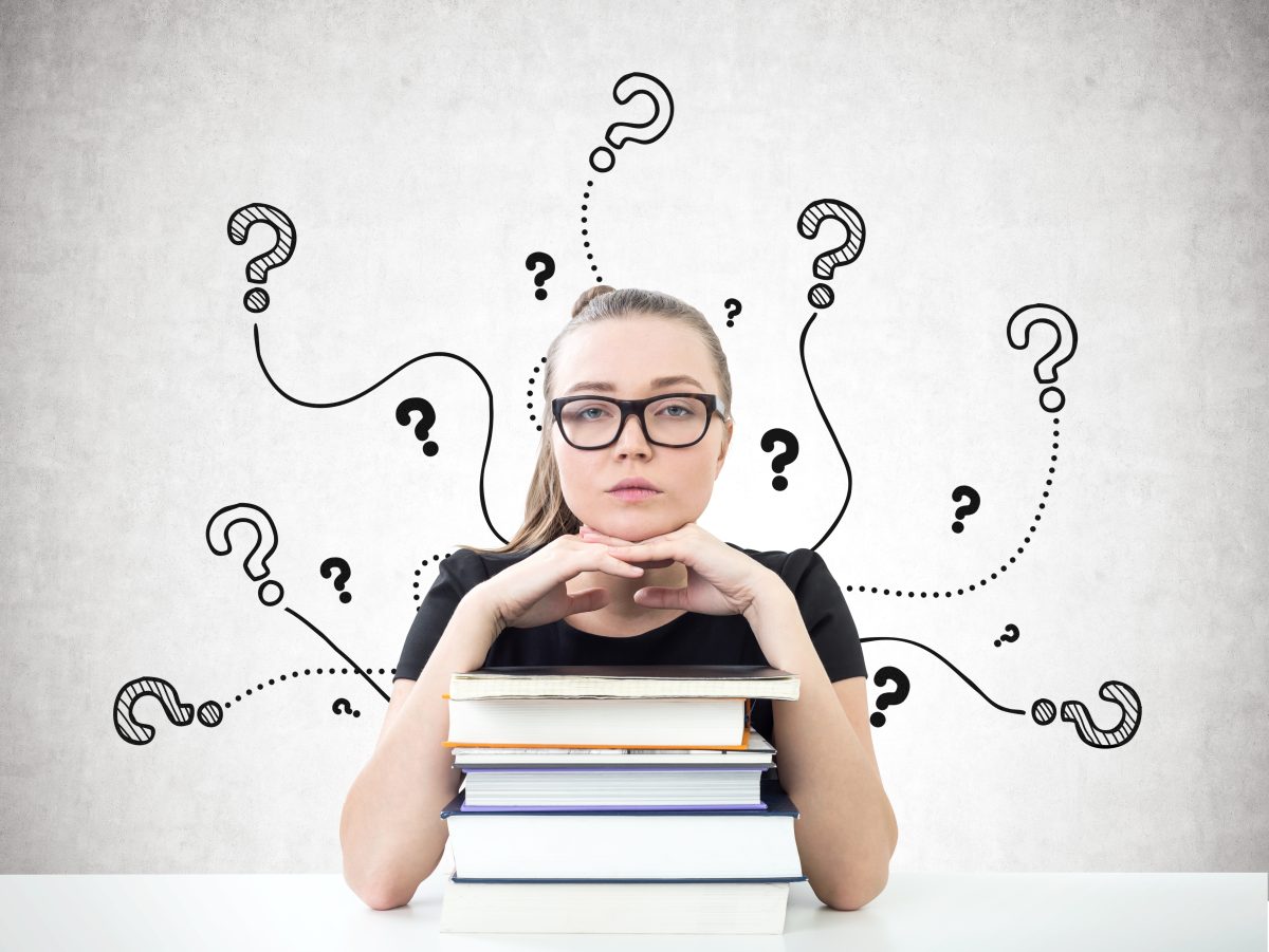 Portrait of a serious young woman in glasses looking forward and sitting with her chin on a stack of books. A concrete wall background with question marks Often, incoming freshmen receive their first university assignment before the school year even begins: the summer reading. Many institutions see the summer reading assignment as an opportunity for new students to develop a sense of camaraderie. By reading the same book, the idea is that students will engage in thought-provoking conversations and have a shared educational experience.
